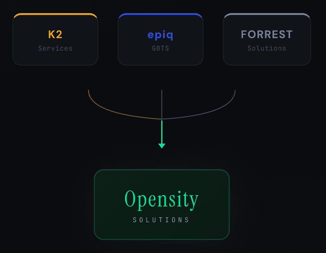 By combining K2 Services, Epiq GBTS, and Forrest Solutions, Opensity is positioning managed services as operating infrastructure—linking vendor consolidation to standardized delivery, reporting, and workflow automation.